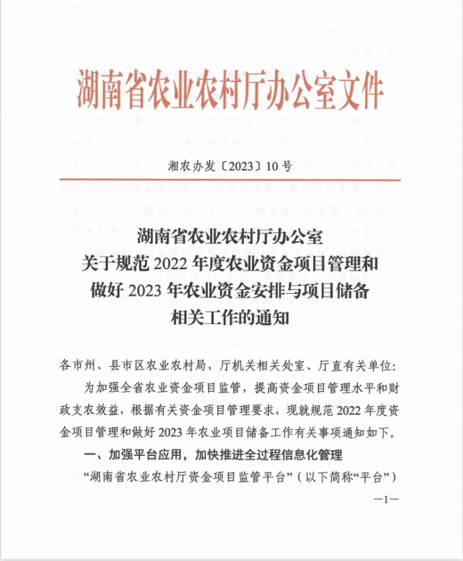 湖南省农业农村厅办公室关于规范2022年度农业资金项目管理和做好 2023 年农业资金安排与项目储备相关工作的通知